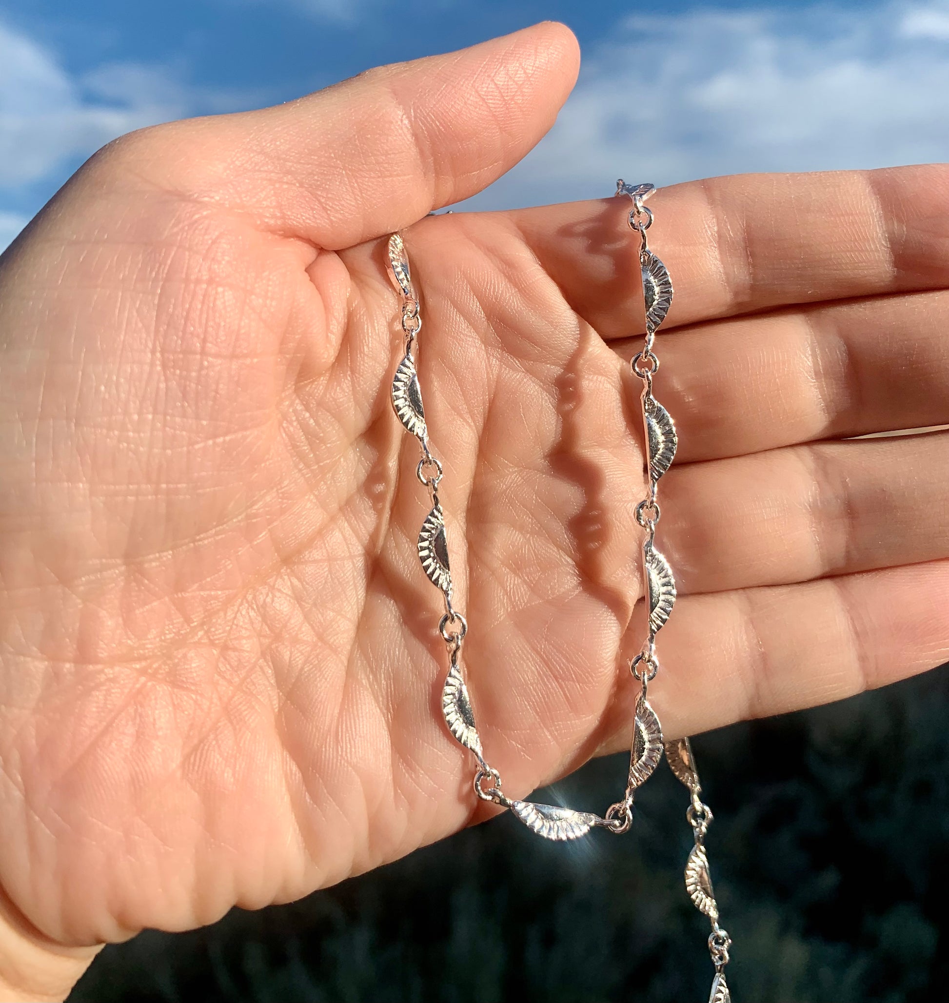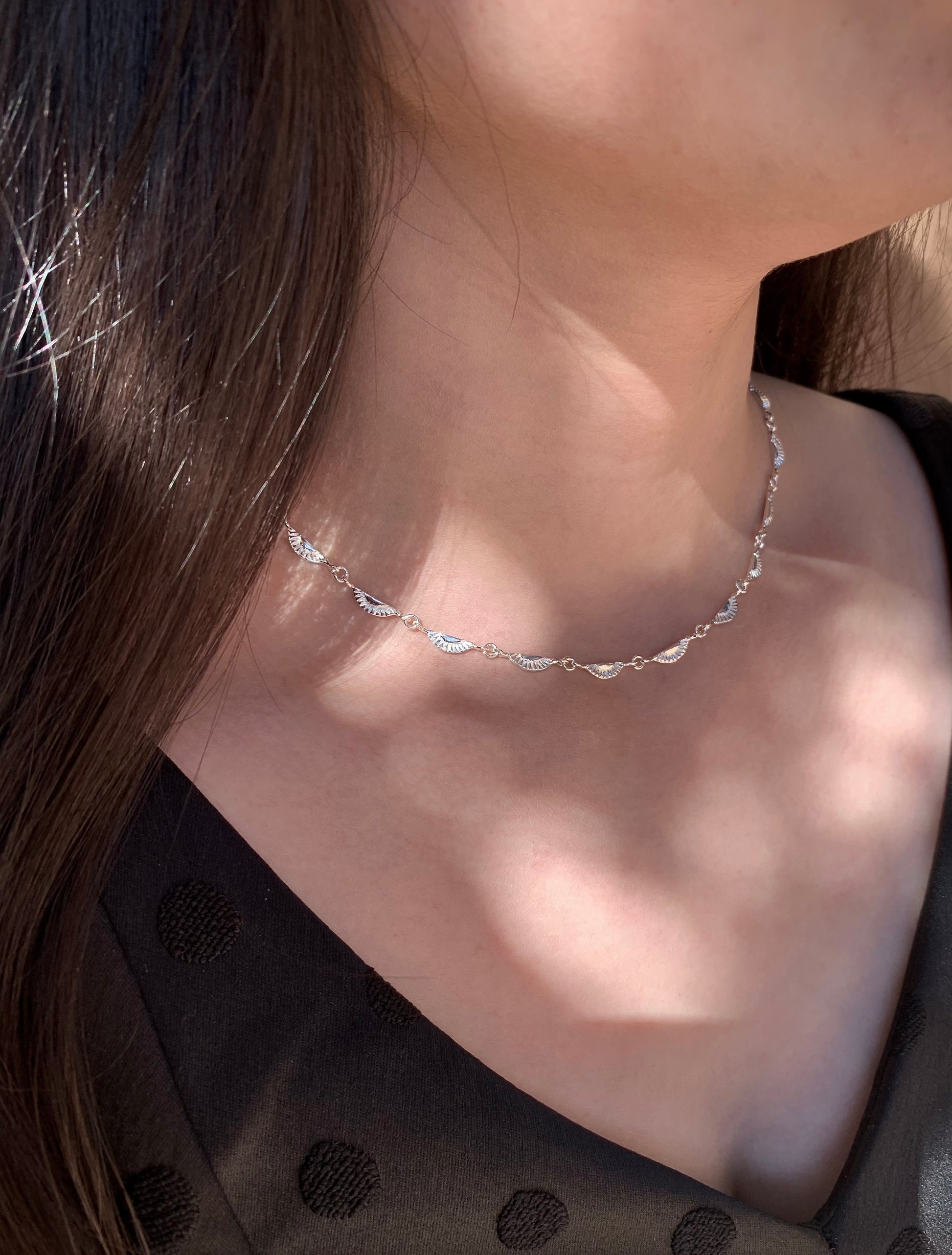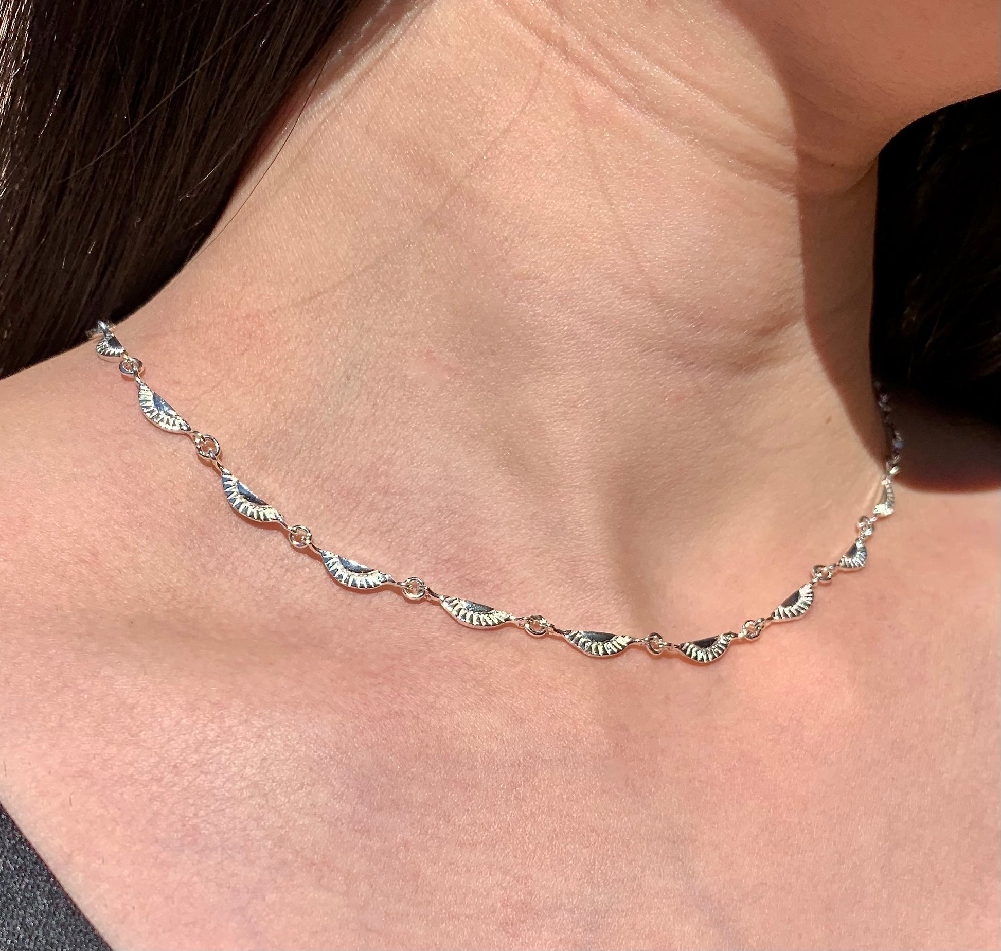 Simple Art Deco chain necklace. The length is adjustable 18 to 20 inches. All materials are solid sterling silver 925. It can be worn by itself or stacked with some necklace!
